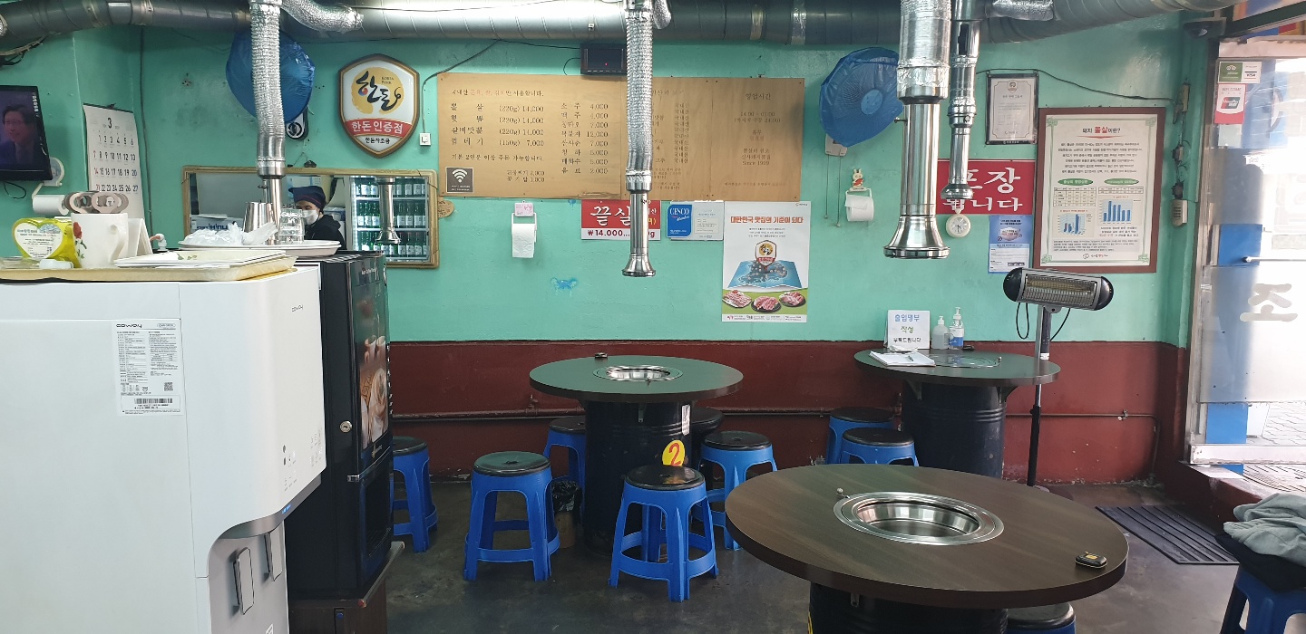 한돈 인증점 마크가 설치가 되어있으며