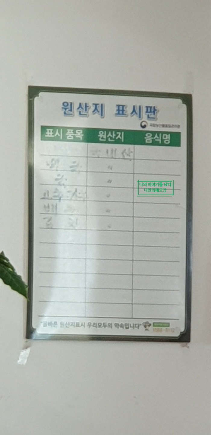 모든 재료 반찬이 다 국내산이라며 원산지 표시가 되어있습니다.