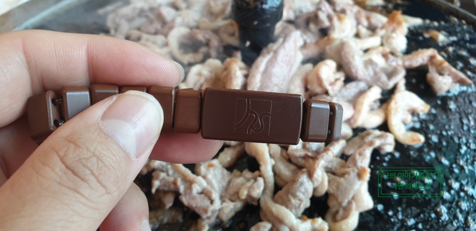 건강팔찌를 착용하고 오리고깃집에서 건강해지고 있어요.
