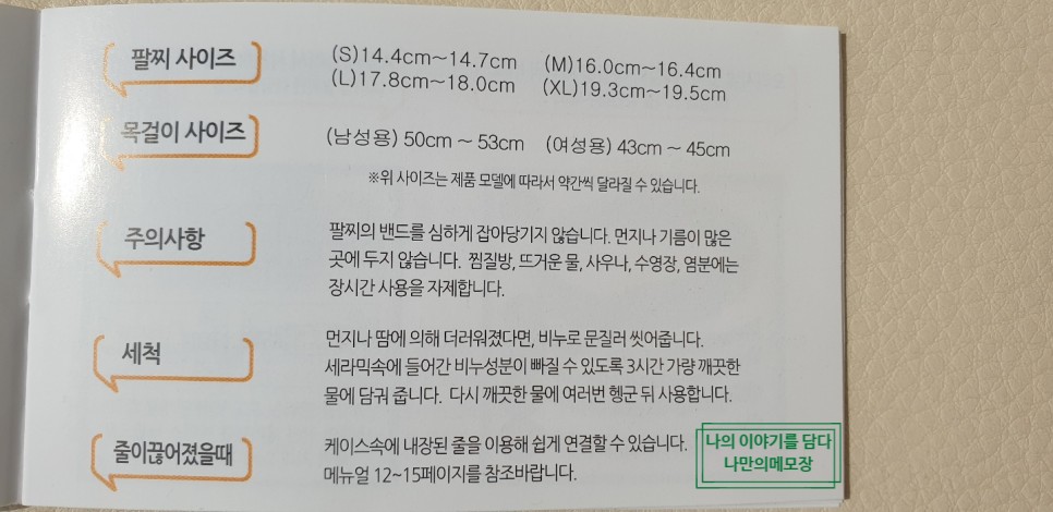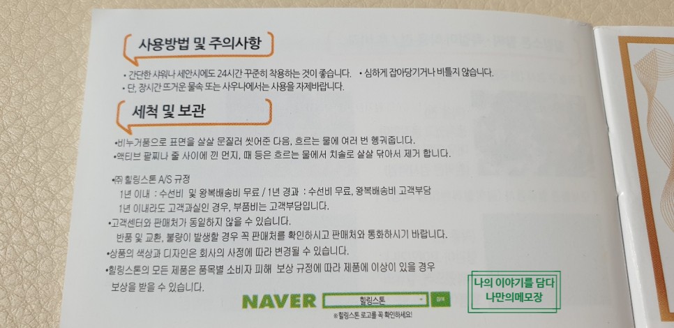 건강팔찌 힐링스톤을 착용하면서 주의사항 세척 및 보관 부분도 안내 책자에 적혀있어서