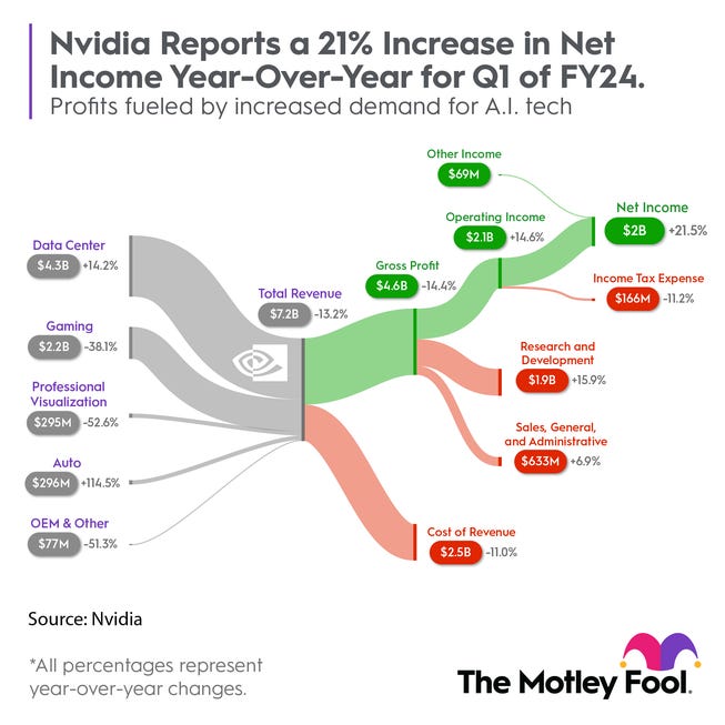 대한 놀라운 지침을 제공하면서 주식 시장을 현혹시켰습니다. 주가는 애프터마켓 세션을 거의 25% 상승하여 2,000억 달러에 가까운 시장 가치를 추가했습니다. 세계에서 가장 가치 있는 반도체 회사는 실제로 전년 대비 매출 감소를 보고했으며, 이는 게임 부문에서 어려운 비교에 직면했기 때문에 예상되었습니다. 그러나 모든 시선은 데이터 센터 부문에 있었습니다. 이는 지난해 말 출시 이후 급증한 인공지능(AI) 칩 수요 급증을 반영한 것이다. 여기에서 Nvidia는 Data Center 수익을 실망시키지 않았습니다.