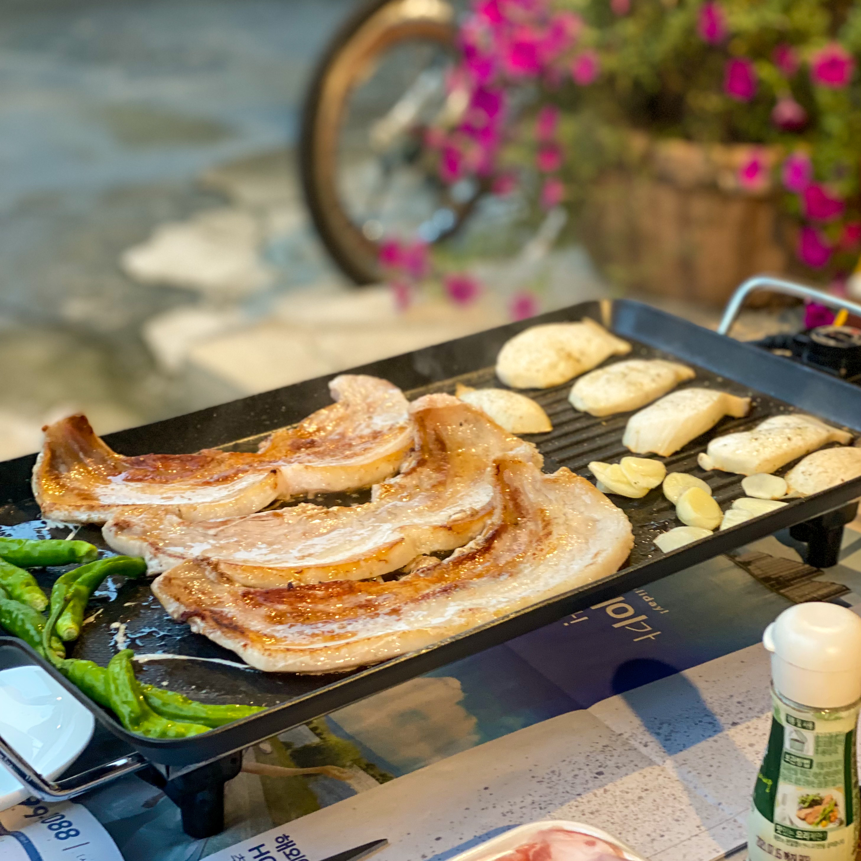 오늘 오후에 비가 쏟아지고 그친다음 조금 선선해진 바람을 맞으며 마당에서 삼겹살을 구워먹었습니다!😋