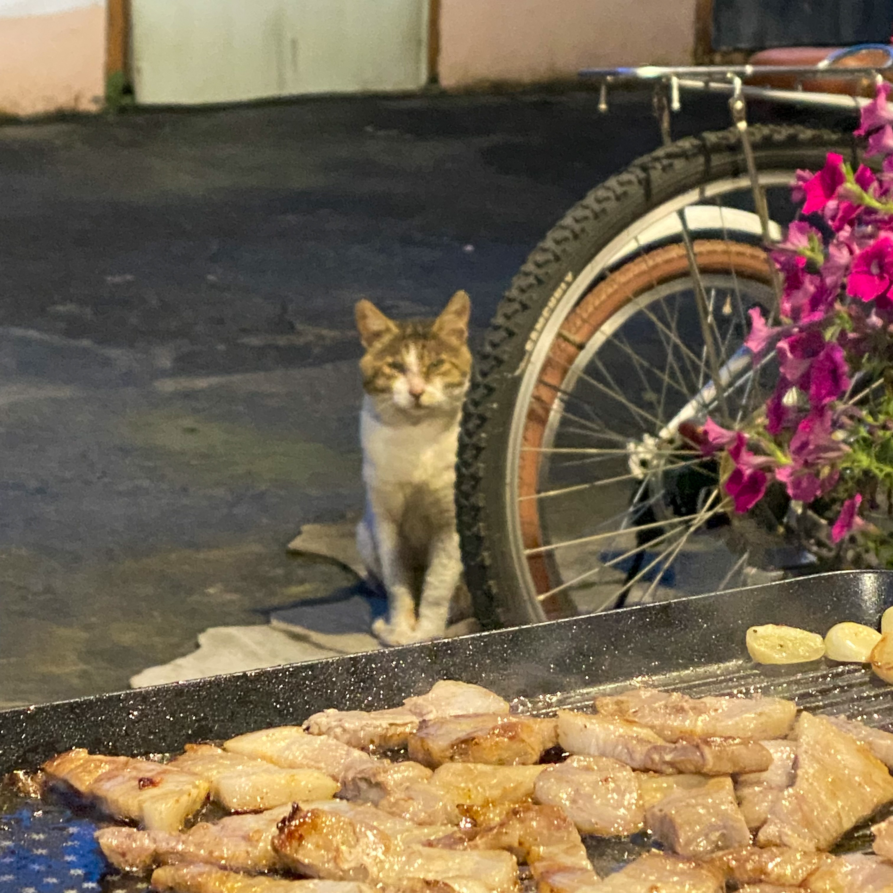 맛있는 삼겹살 냄새가 퍼졌는데 몰래온 손님도 오셔서 반가웠어요🐱냥
