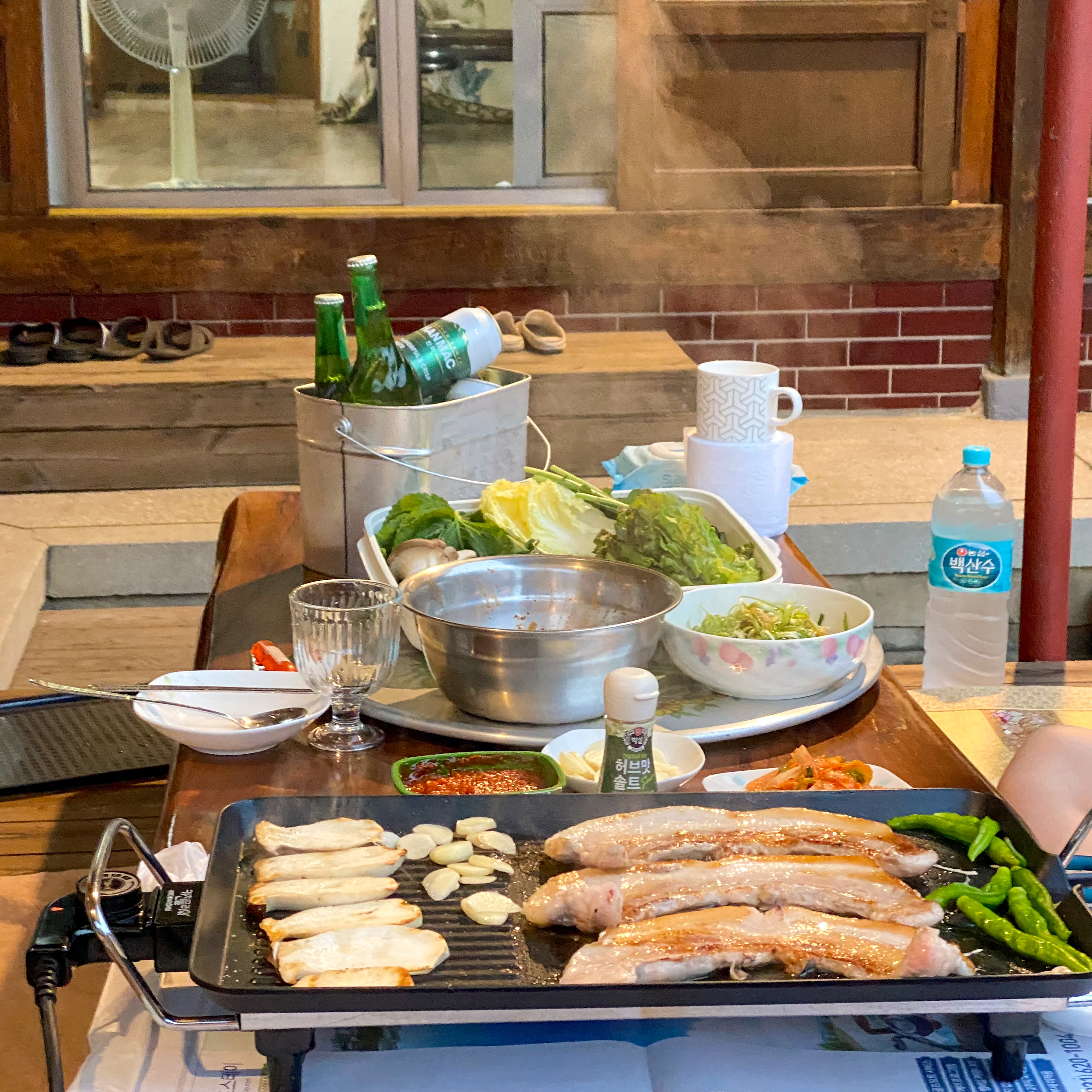 비온뒤 마당에서 삼겹살먹기! 너무 운치있지 않나요~?