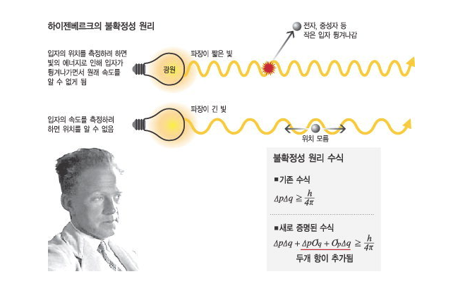 예를 들어, 전자의 위치와 운동량의 곱이 1이라고 하고, 위치 정확도가 0.01로 정해져 있다면, 운동량은 100까지 허락됩니다. 한쪽을 정밀하게 측정하면 다른쪽은 불확정되어 변동이 커지는 것입니다.