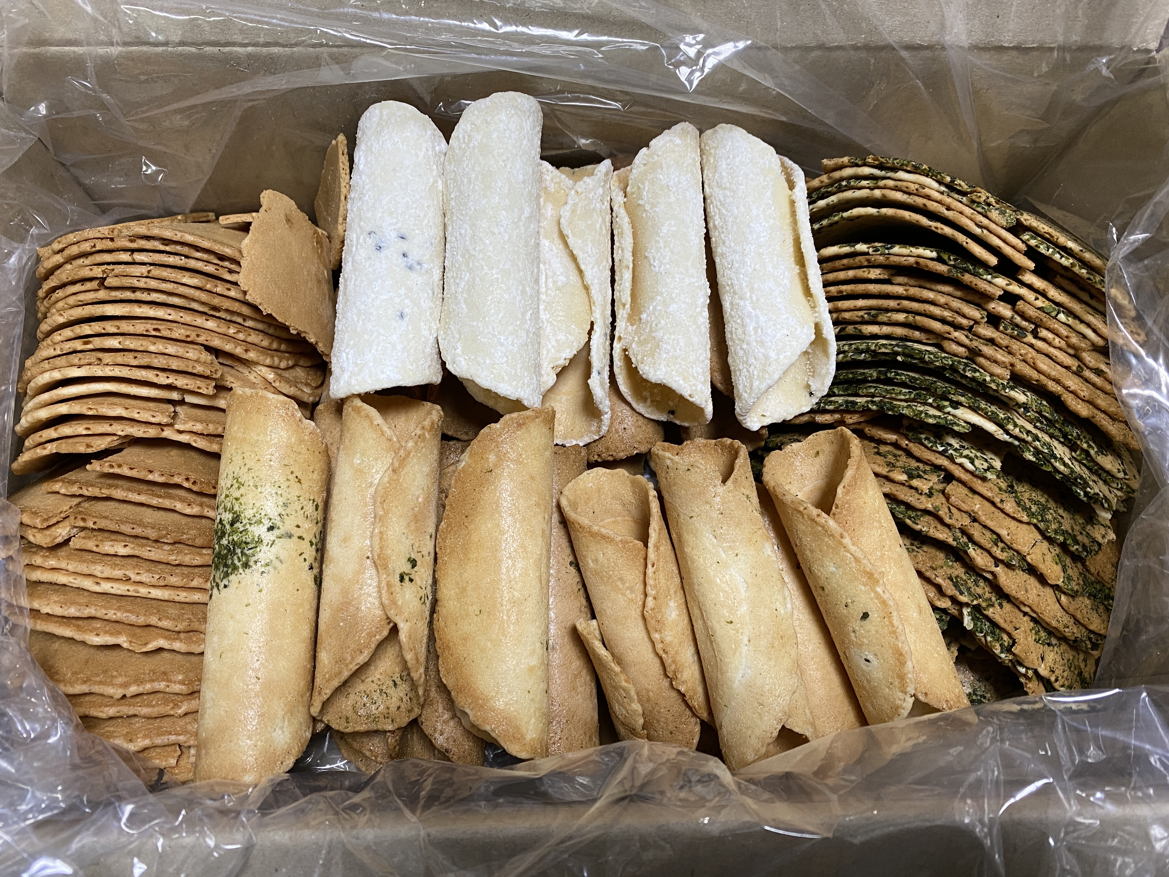 과자가 왔는데, 인기가 있는 상품인지 마치 갓 만든 것처럼 바삭바삭하다.