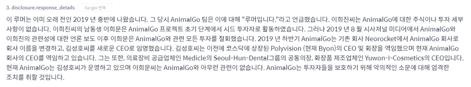 의혹이 제기되었음에도 쟁글에는 이를 해소할 만한 공시는 과거 루머였다고 답변이 이루어진 것으로 종결된 것으로 보인다.
