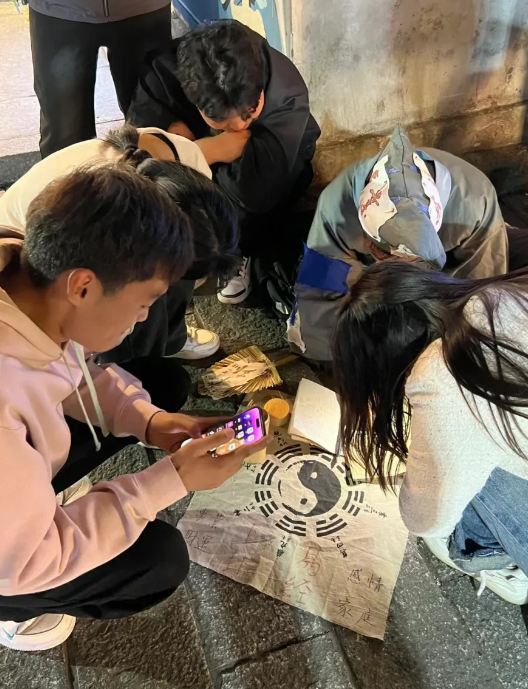 전통적인 길거리 운세와는 다르게, 여기의 상인과 손님은 대부분 젊은 사람들이야.