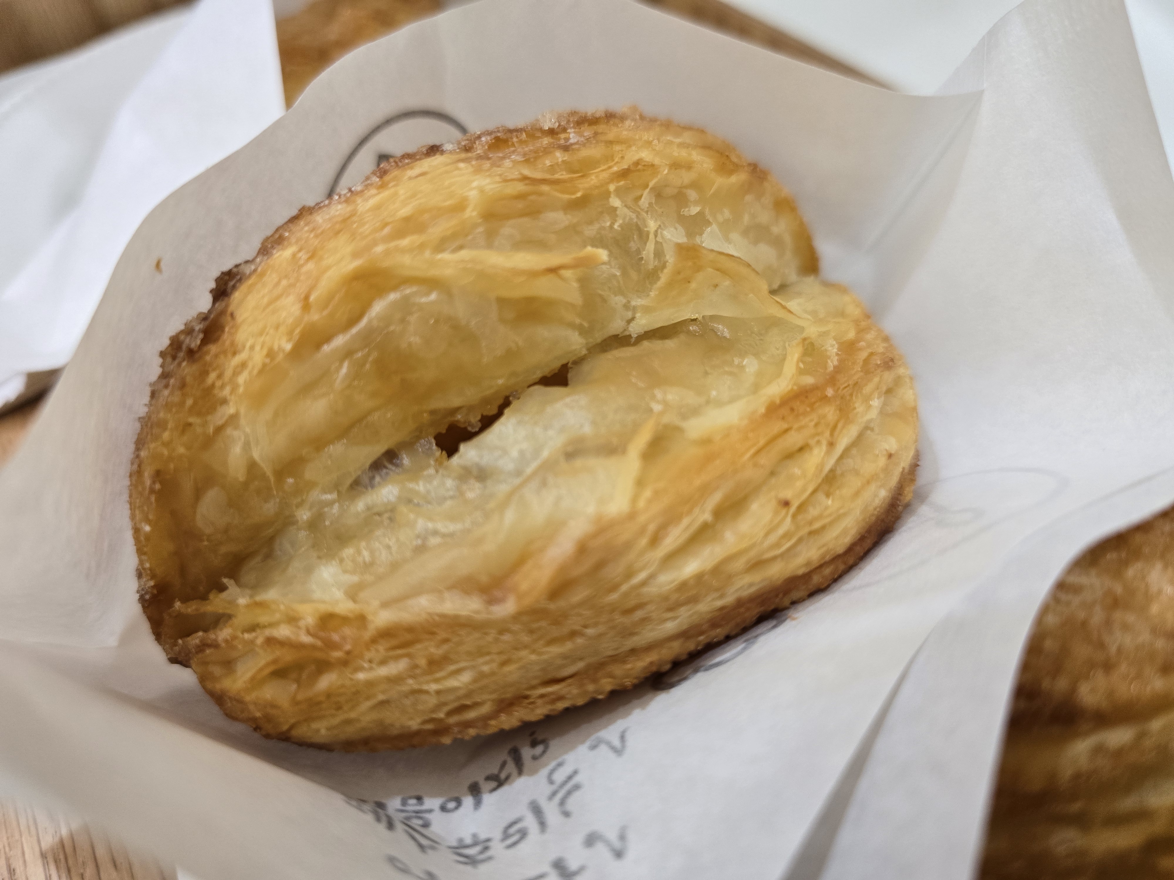 이곳의 시그니처 메뉴인 사과파이는 층층이 쌓인 퍼프 페이스트리 형태로, 겉은 황금빛 결이 살아 있을 만큼 바삭하게 구워져 있었으며 느끼하지 않고 담백한 맛에 사과 특유의 향이 은은하게 느껴졌습니다.