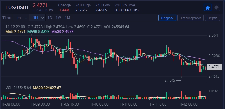 디파이코인인척 했던 이오스 시세는 처참합니다.