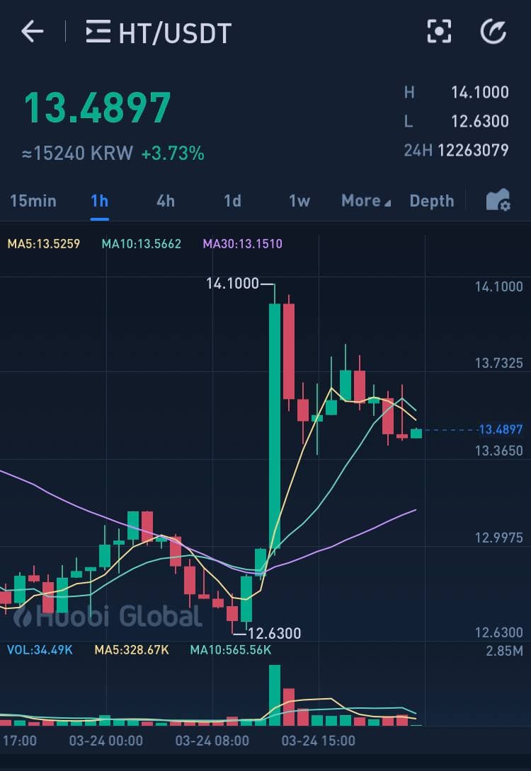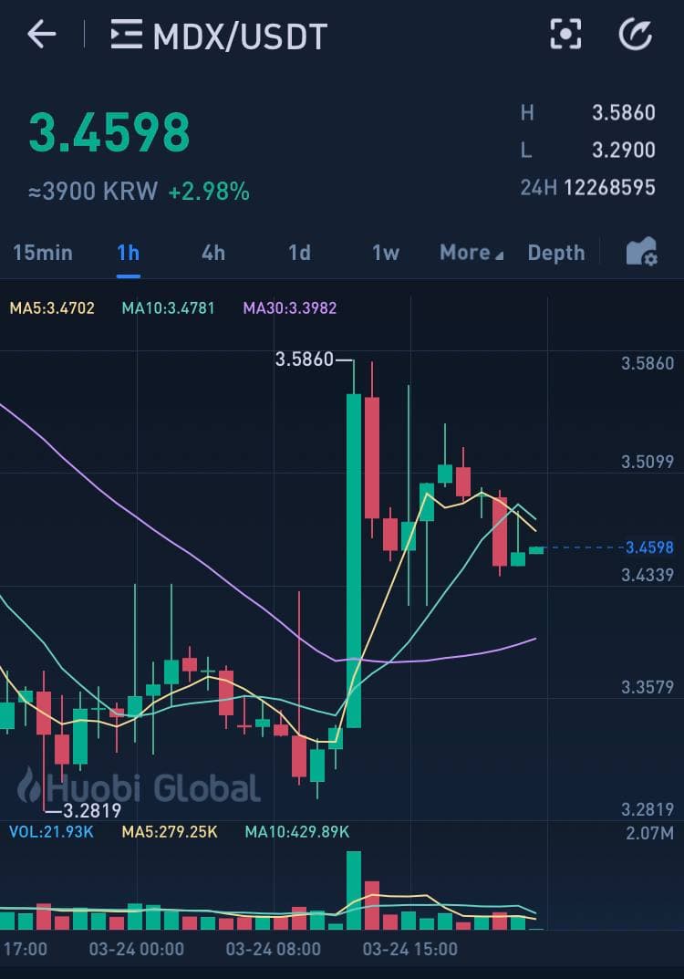 후오비 두쥔대표 인터뷰이후 HT와 MDX토큰의 가격이 급등세를 보이기도 했습니다.