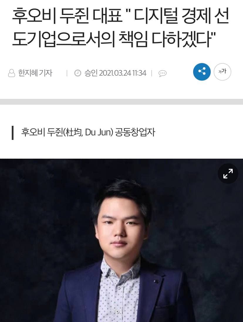 후오비 두쥔 대표 " 디지털 경제 선도기업으로서의 책임 다하겠다"