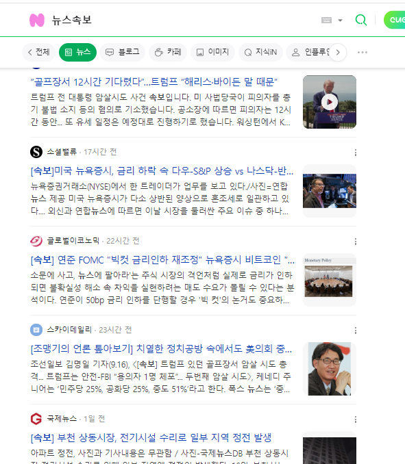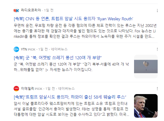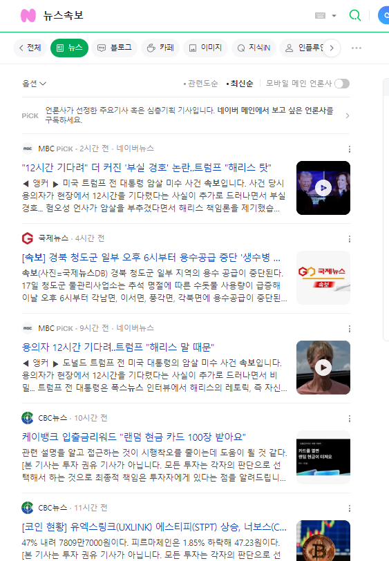 이렇게 뉴스속보를 검색한뒤에