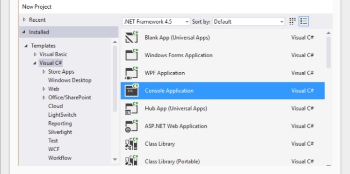다음으로 File-> New-> Project를 클릭 한 다음 Console Application을 선택합니다.