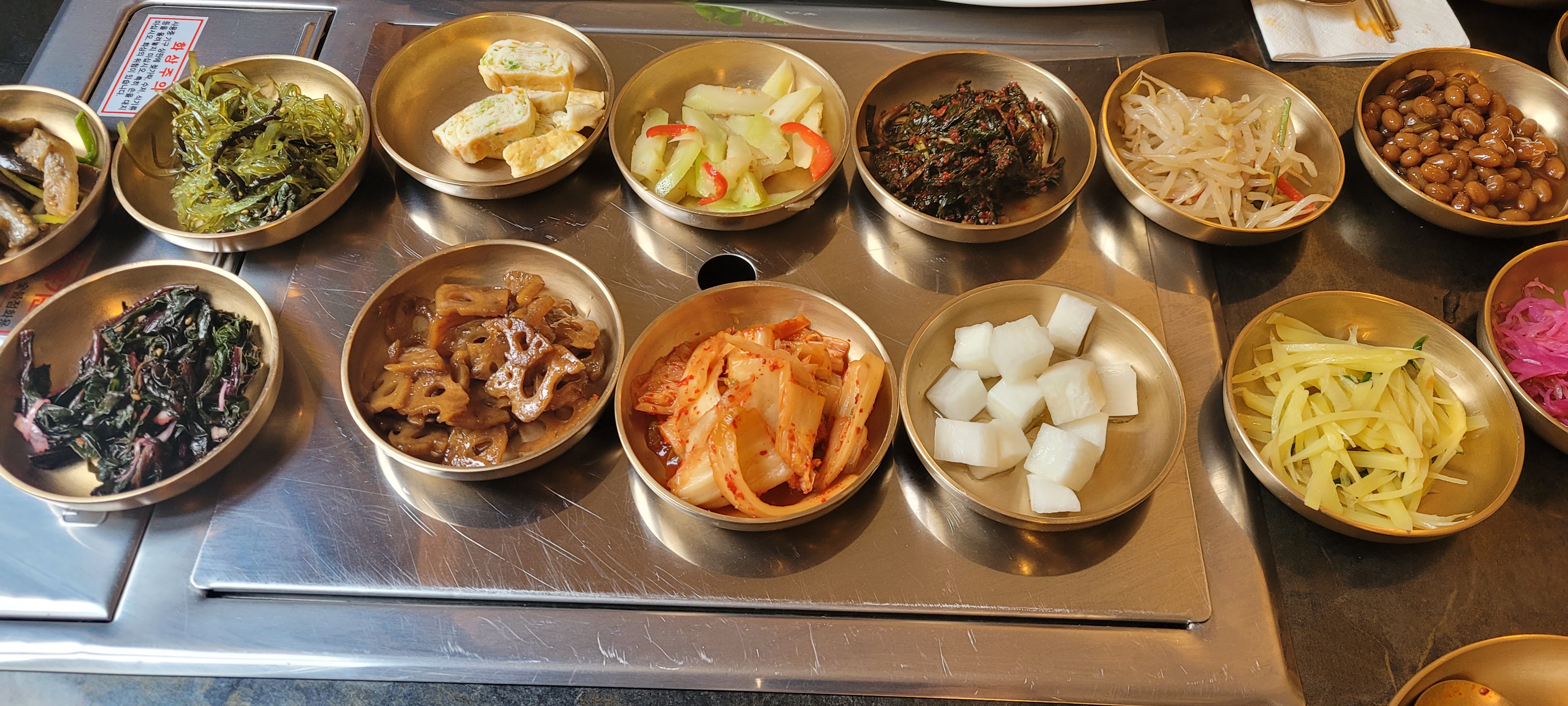 10첩이 넘는 반찬부터 눈길을 끌었습니다. 파리의 웬만한 식당에서 5첩 이상 반찬 나오는 식당을 볼 수 없습니다.