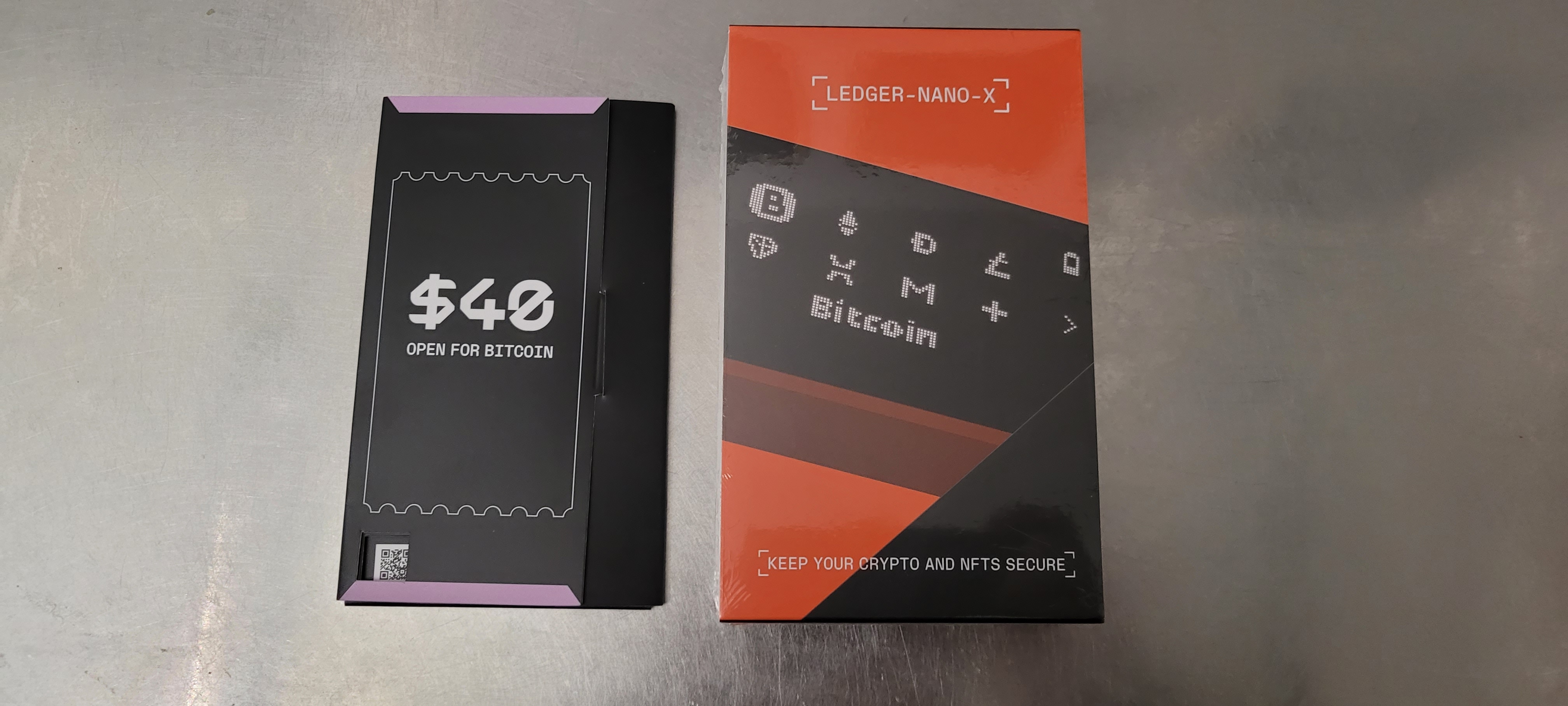 와이드 생일 선물로 암호화폐 하드 월렛 나노 렛져 X 와 40달러 상당의 비트코인 전송할 수 있는 코드를 줬습니다.