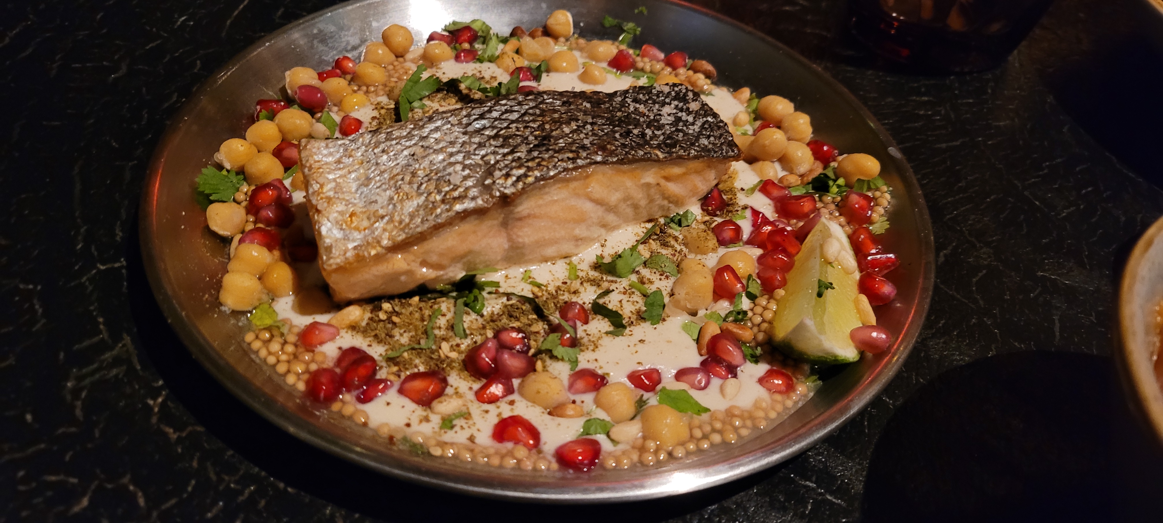 연어 구이 요리인데 석류(그라나다)가 비린향을 잘 잡아 주었습니다.