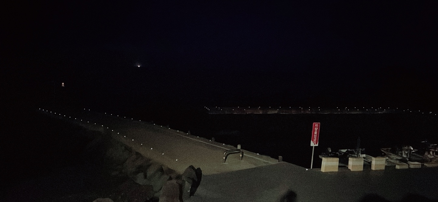 한바퀴를 돌고 다시 찾은 구두미포구는 어둠 가운데 마치 활주로처럼 빛나더라구요.