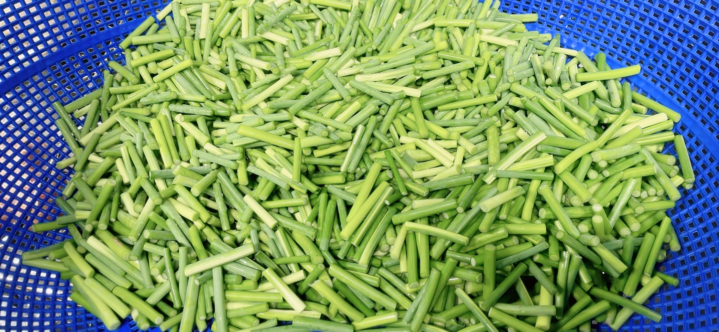 우선 끝부분을 살짝 잘라주고는 3~4Cm 간격으로 잘라줍니다.