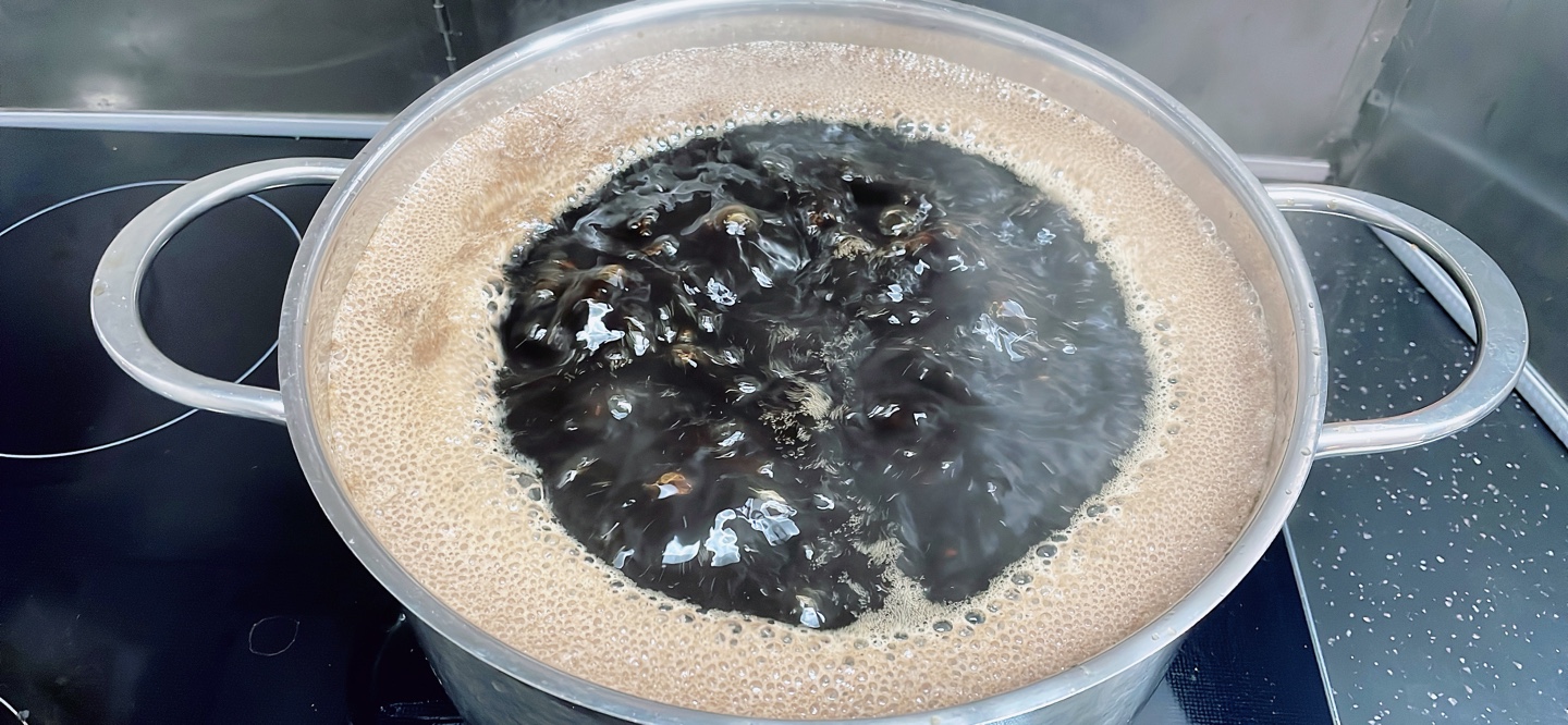 이렇게 한번 푹~ 끓여준 다음 30분 가량 식혔다가 준비해둔 김치통에 부어줍니다.