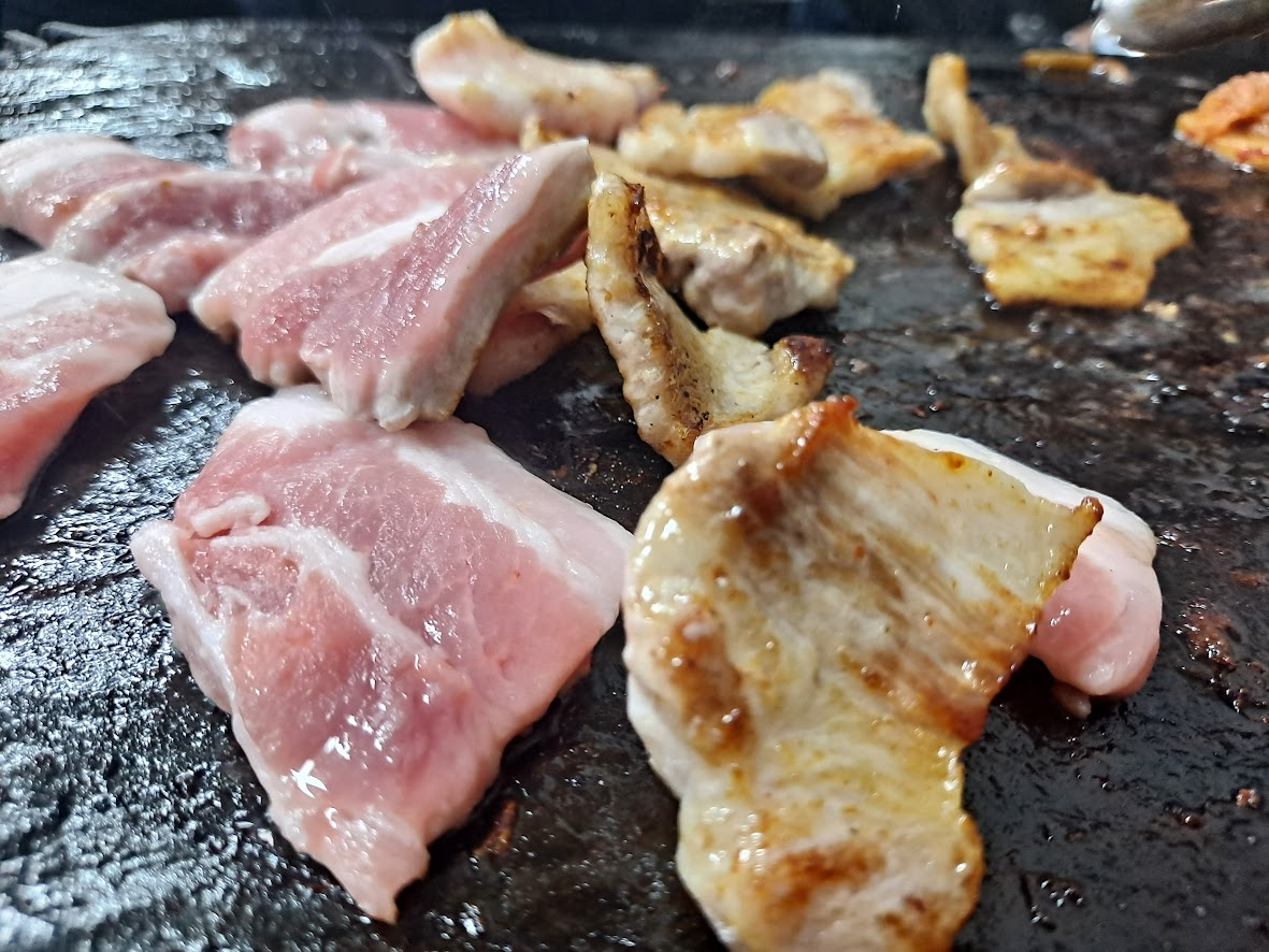 30년된 서민식당인데 생삼겹을 데운 돌판에 구워먹는 집입니다.