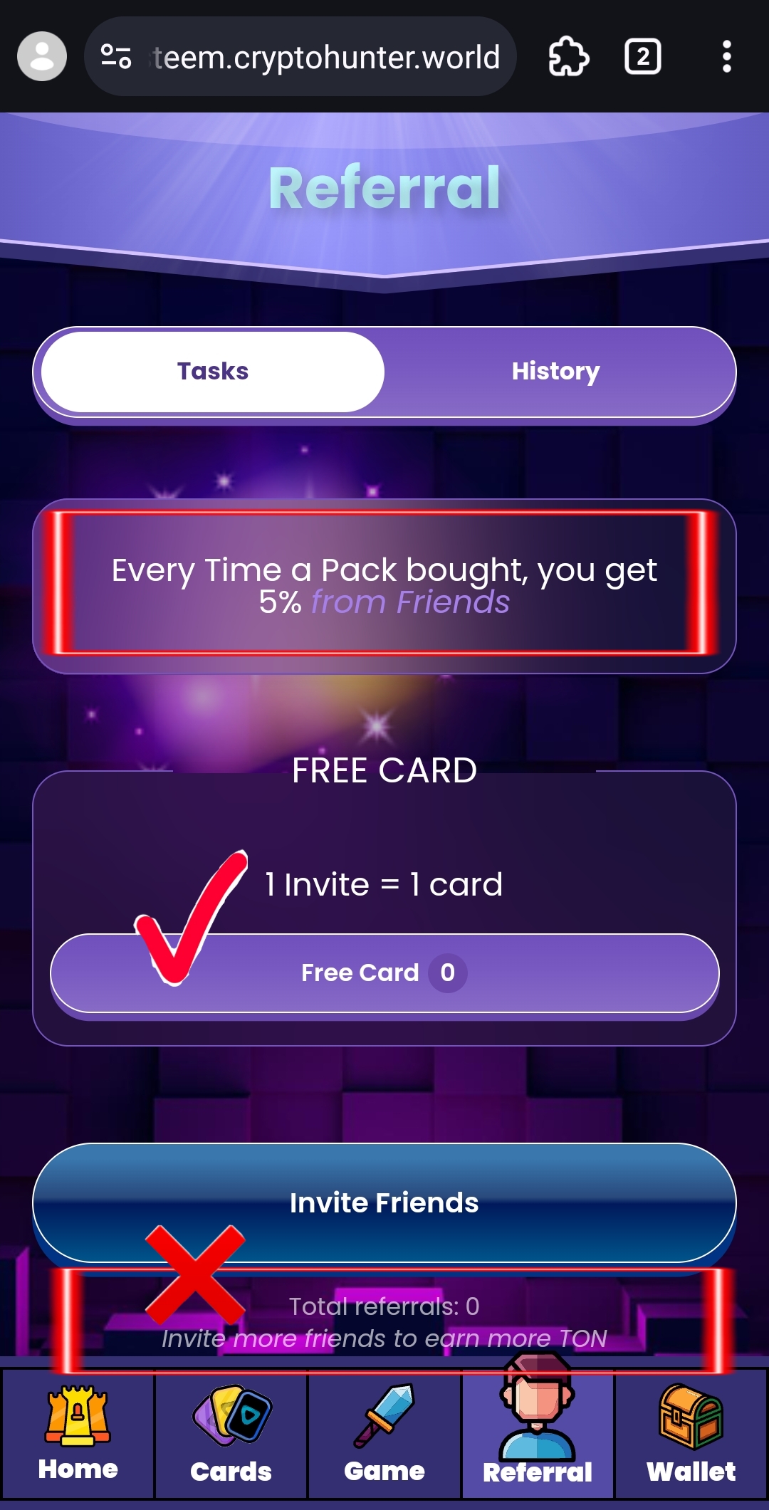 텔레그램 버전에선 초대하면 카드 1장 바로 주고