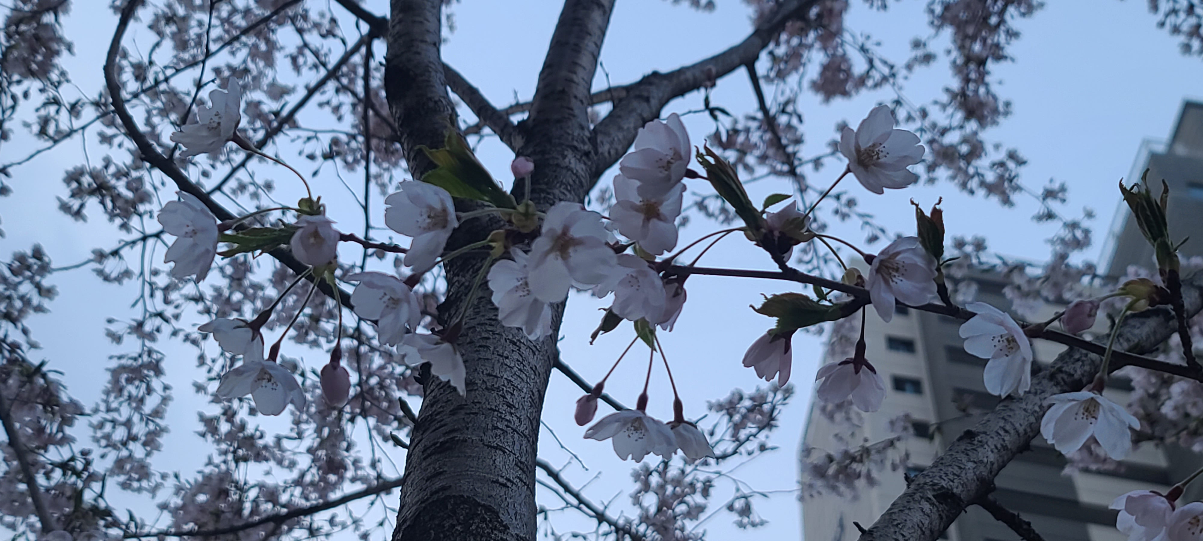 You caught blue sky and pink blossoms!