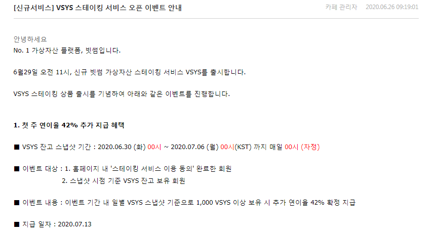 빗썸에서 스테이킹 서비스가 또 출시되었습니다.