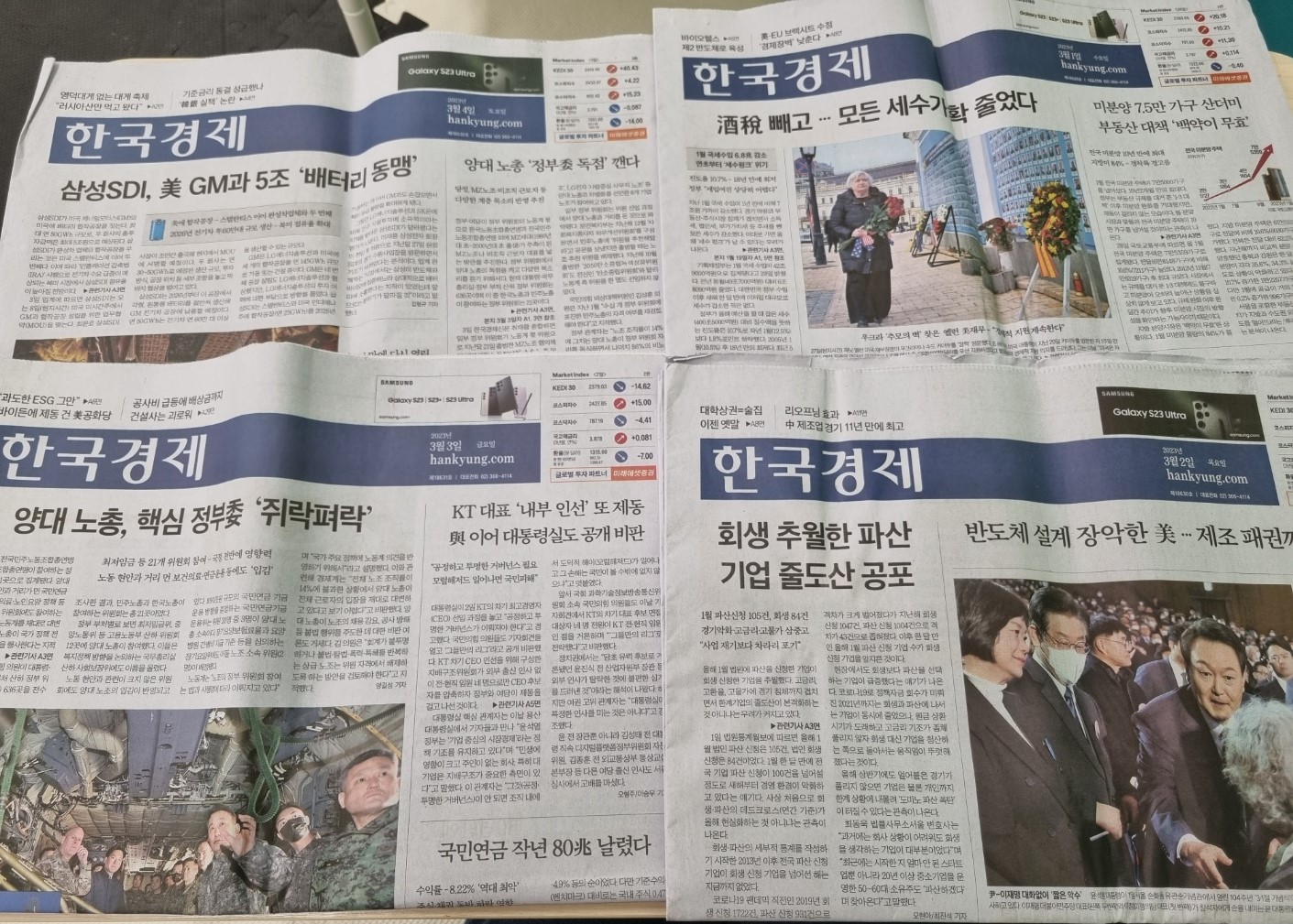 주중에 바빠서 신문을 못 읽으면 주말에 몰아서 읽고 있습니다.