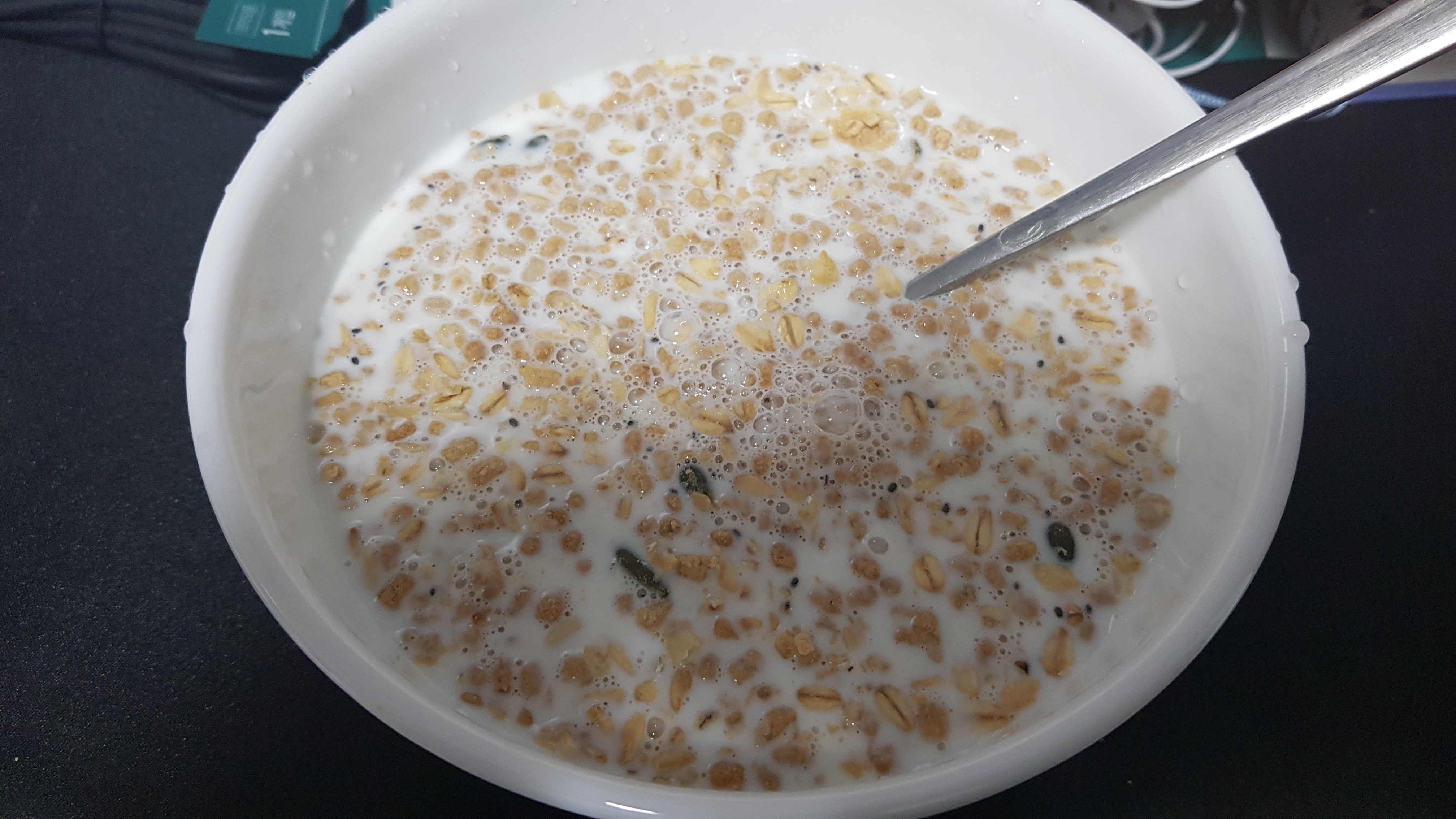 저녁은 가볍게 우유에 후레이크. 무려 프로틴이 들어간 녀석인데, 맛은 별로다. 억지로 우적우적 씹어넘겼다.