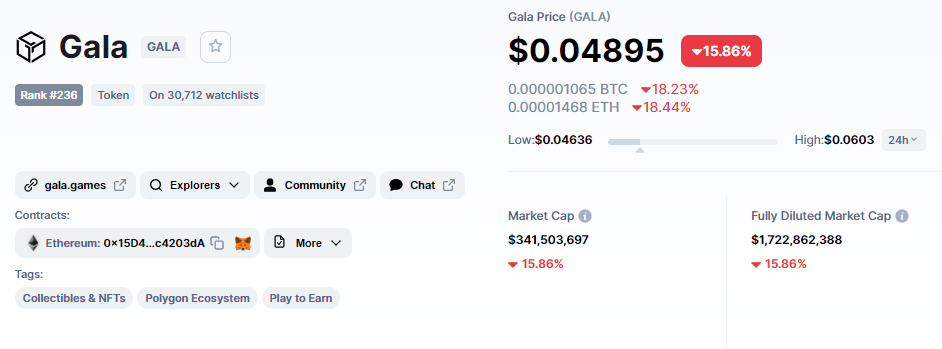 (출처 : https://coinmarketcap.com/currencies/gala/)