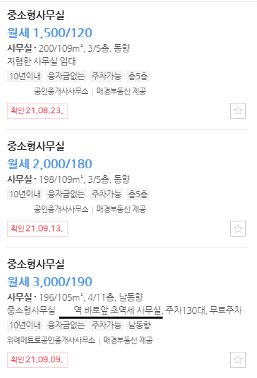 30평 초반대의 '역세권' 사무실 월세가 보증금 3천에 월세 190정도군요.