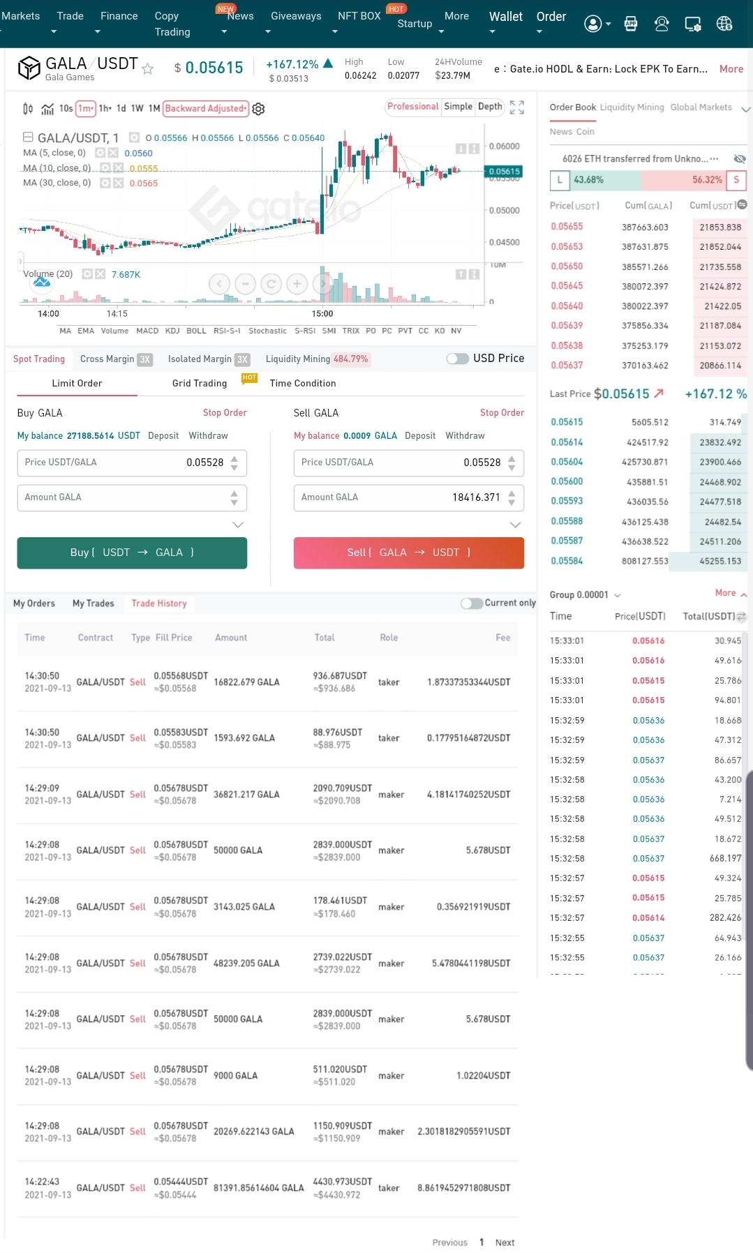 그동안 채굴된 갈라코인 중 약 50만개 정도의 갈라코인을 gate.io 거래소로 전송했습니다.