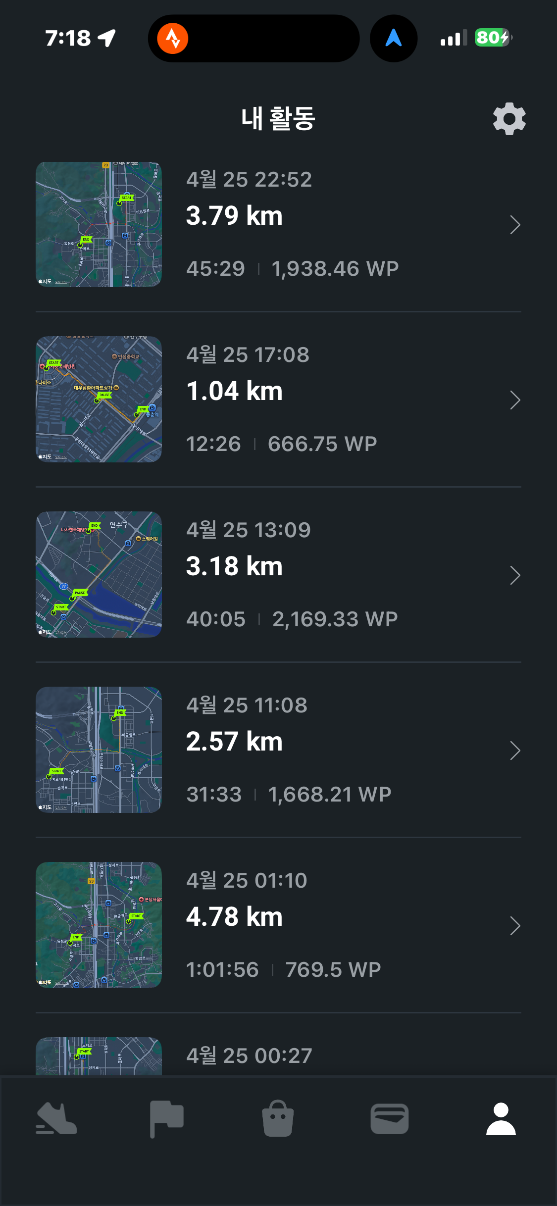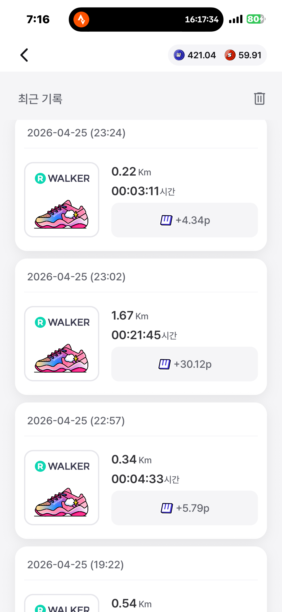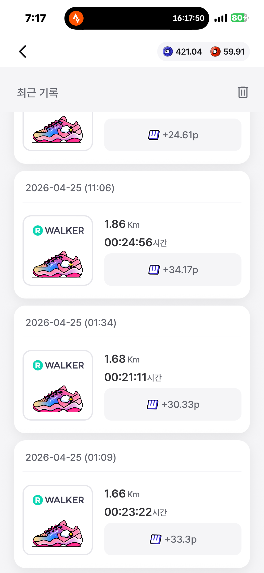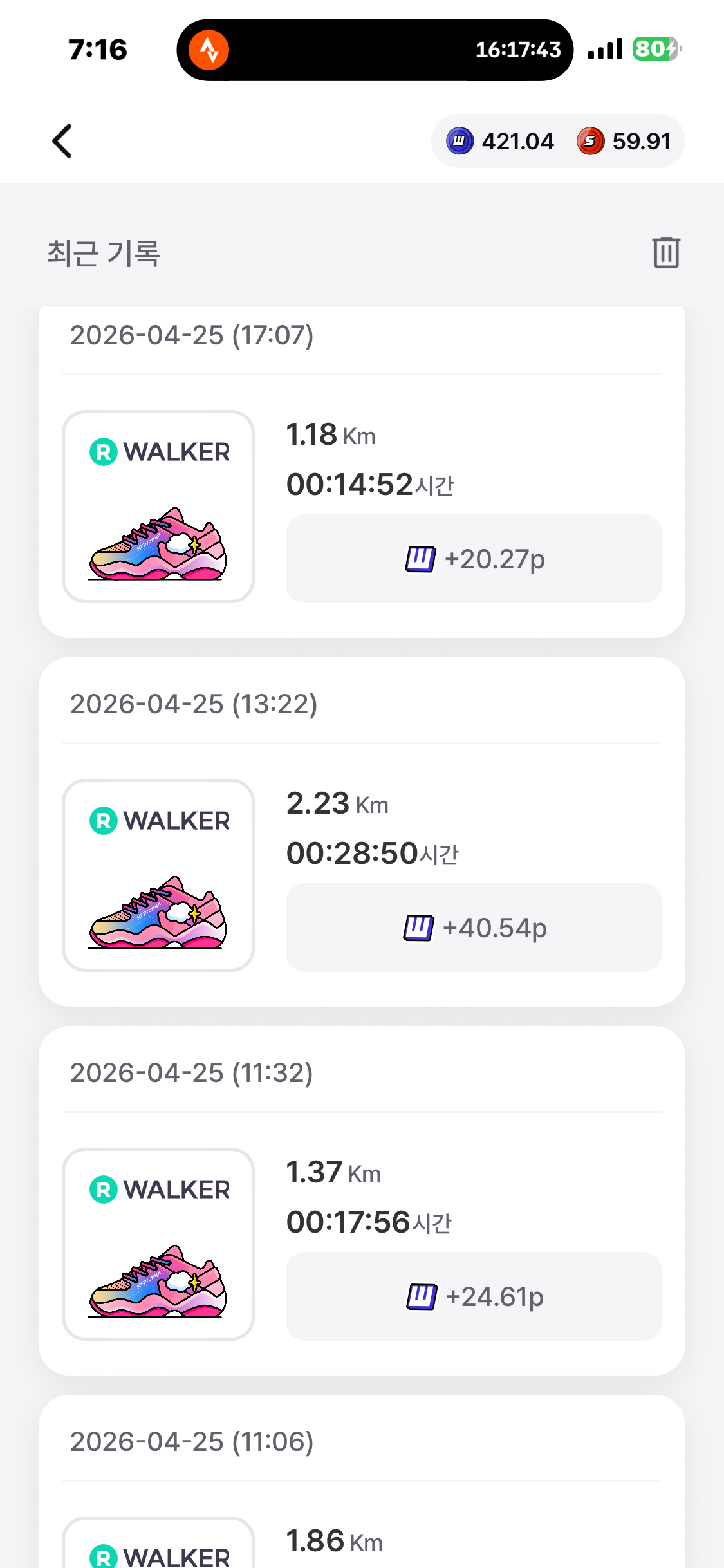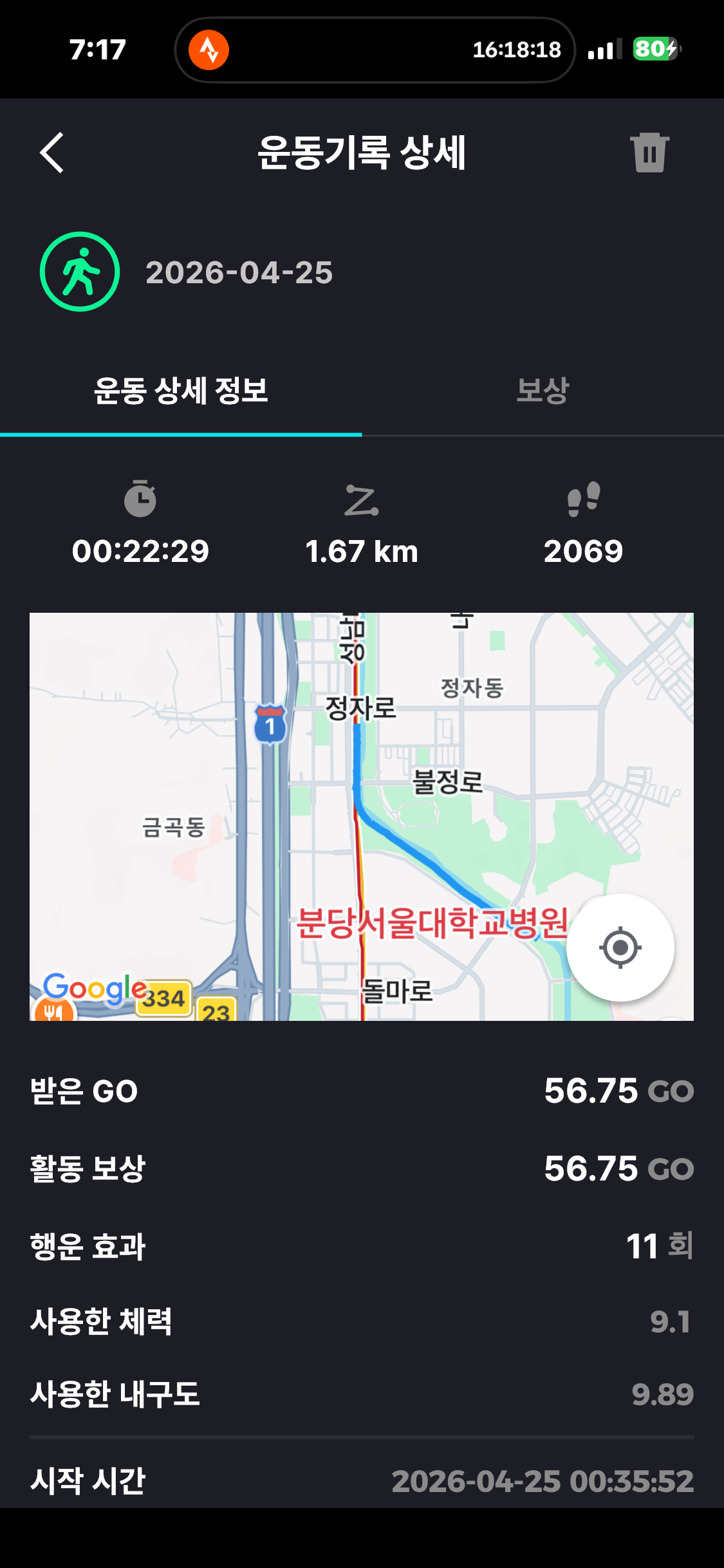[2026년 4월 25일] 어제의 운동 17.67km걷기(목표 10km)