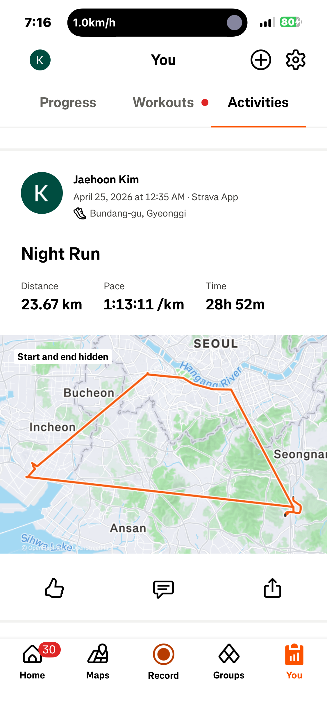 23.67km걸었다고 기록 되었지만