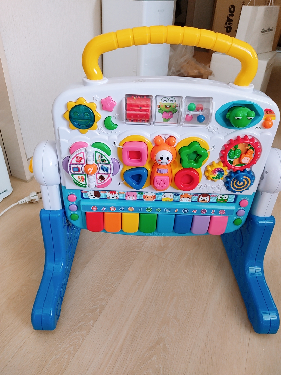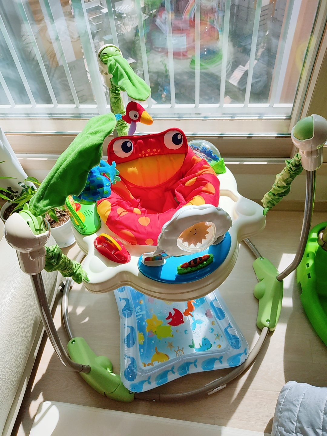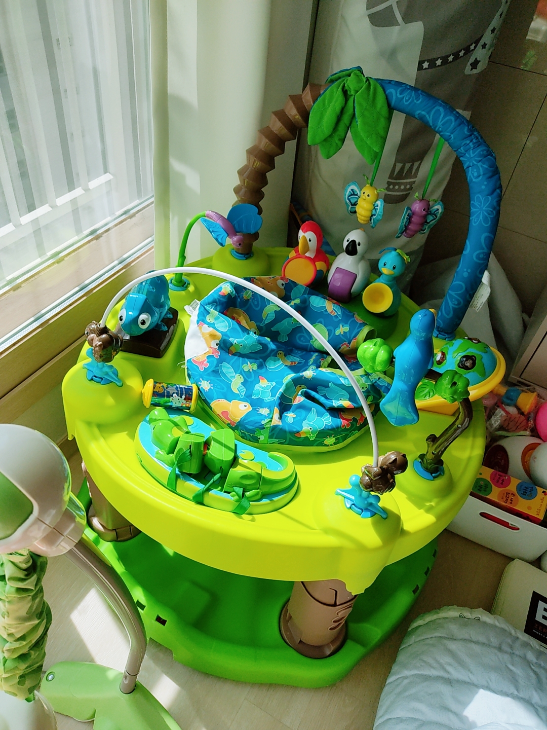 처음에 장난감소리에 미친듯이 울었어요 핵당황! ㅎㅎ5개월부터 소리에 익숙해지니 너무 잘갖고놀아요 ㅎㅎ 특히 360도로 돌면서 장난감 만져서 꽤 오랜시간 쏘서에서 놀수있는듯! 앵무새 장난감으로 인사시켰더니 꺄르르르르~~넘어가요 😍😍