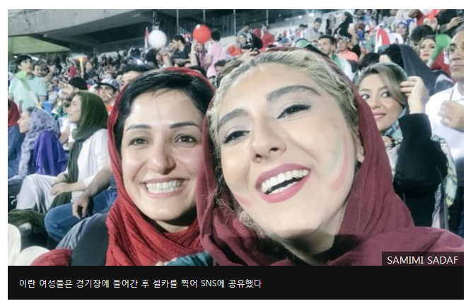 지난 수요일 이란 테헤란의 아자디 스타디움에는 2018 월드컵 이란-스페인전을 관람하기 위해 많은 여성 관람객들이 축구장을 찾았고, 경기장에서 셀카를 찍은 이란 여성들의 사진은 SNS에서 금세 화제가 됐다.