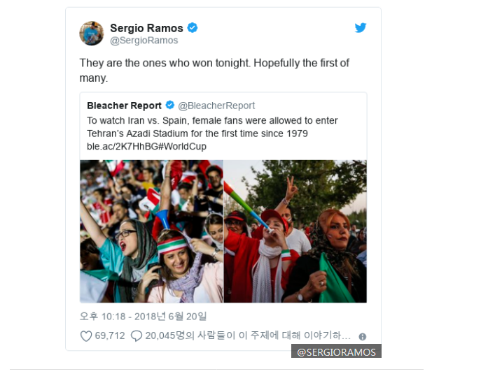 이란 국가대표팀은 국기를 든 여성의 사진을 트위터에 게시하기도 했다.