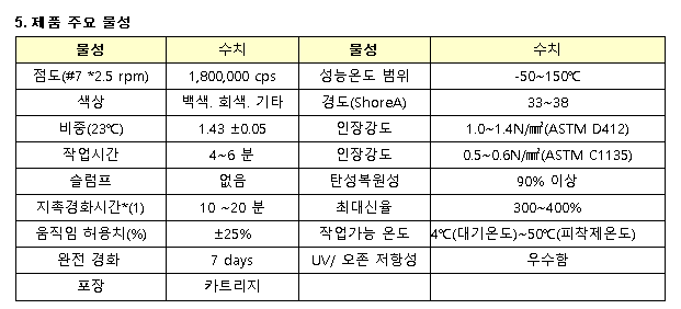 표에서는 ASTM C1135는 0.5N/mm2, ASTM D412는 1.0N/mm2