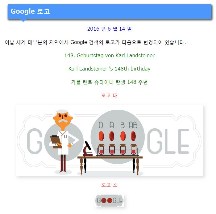 - 13에는 구글 로고가 카일 란트슈타이너 탄생 148주년