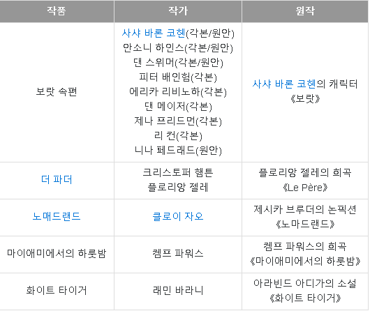 각본상 부문입니다