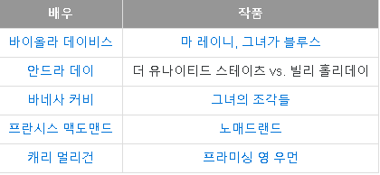 여우 주연상 부문입니다