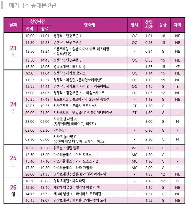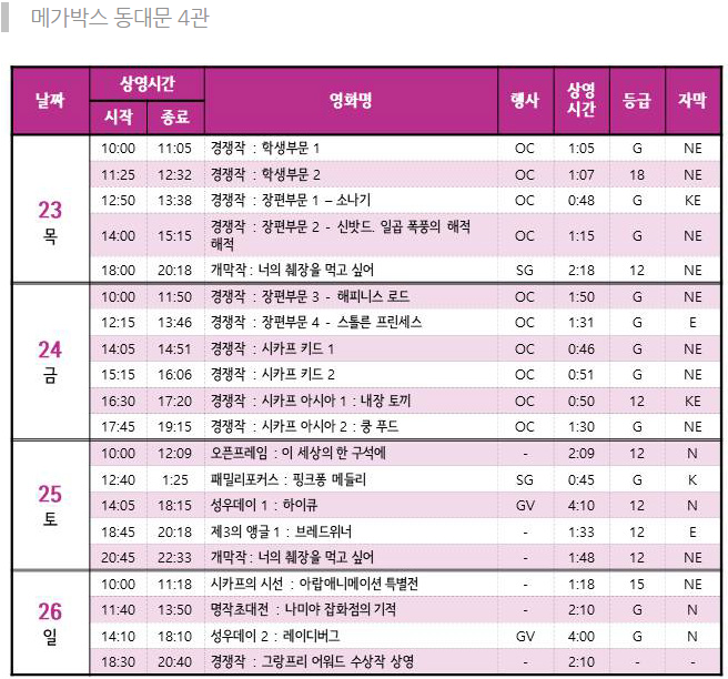 시카프 개막작의 경우는 영화로 이미 봐서.... 보게되면... 영화랑 애니