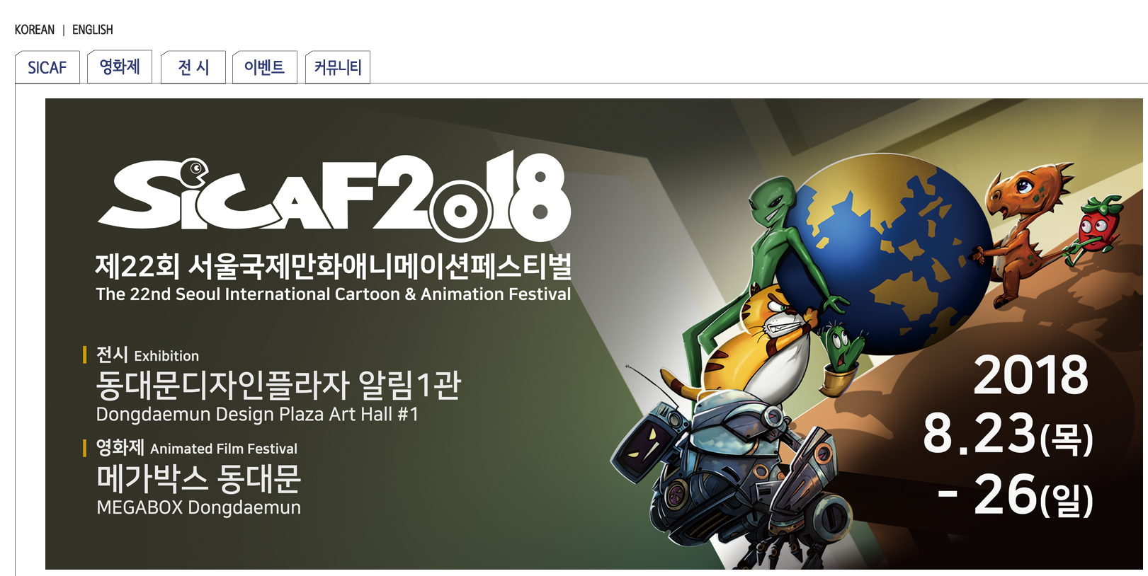 sicaf 2018이 열리네요ai1love (68)in #kr • 8 years ago 8/23~8/26까지 동대문 디자인 플라자에서 열린다고 합니다 개막작: 너의 췌장을 먹고 싶어 · 일시: 2018년 8월 23일(목) 18:00 · 장소: 메가박스 동대문 4관 애니메이션은 동대문 4관과 8관에서 상영합니다 전시는 DDP에서 애니메이션은 메가박스에서 ... 이렇게 나눴네요 #sicaf #ddp #megabox #jjangjjangman