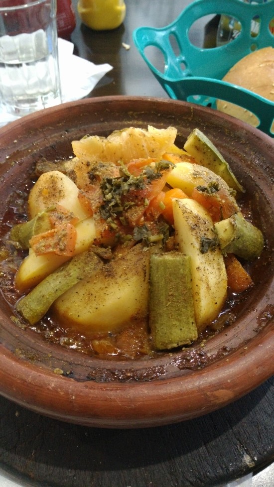 모로코에 오래된 전통 음식으로 한국의 찜요리와 약간 비슷하다고 해도 될까? 보통 외국에서는 스튜와 비슷하다고 한다. 주로 감자, 당근, 양파, 올리브 등의 재료와 주재료인 고기를 넣어 만든다. 소고기, 양고기, 닭고기, 생선 등 무엇을 넣어 요리를 하던 저 원뿔 모양의 그릇을 사용하면 따진이 된다.