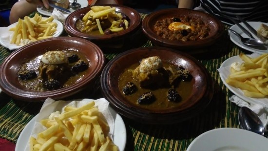 모로코의 국민 음식이라 어느 식당을 가더라도 가게 앞에서 조리 중인 따진 그릇을 발견할 수 있다. 보이지 않는다면 따진이 맛있어서 다 팔린 집이다(?) 생각하면 된다. 아~ 미리 조리가 되지 않은 따진은 주문을 하게 되면 조리하는데 시간이 엄청 오래 걸린다.