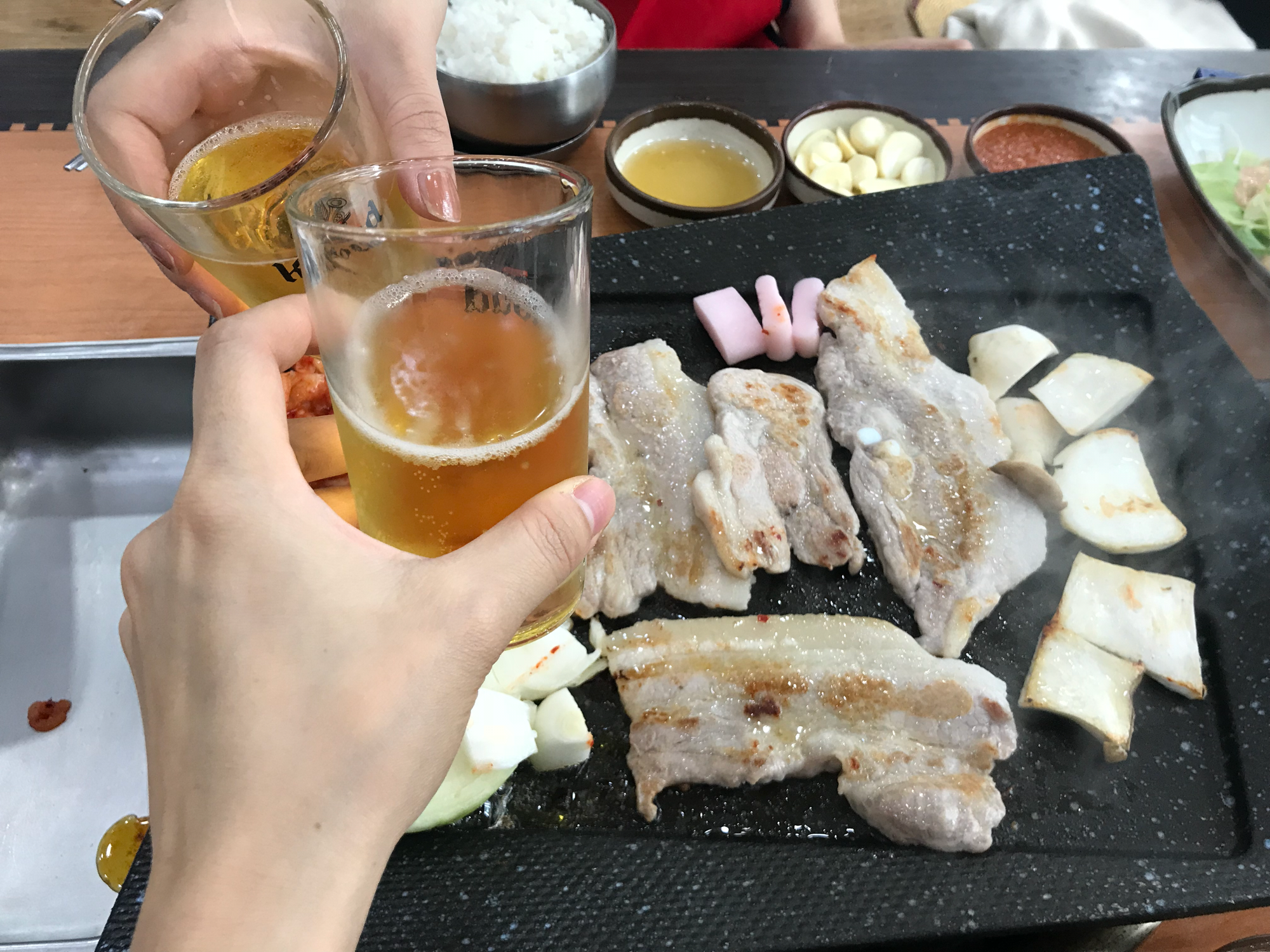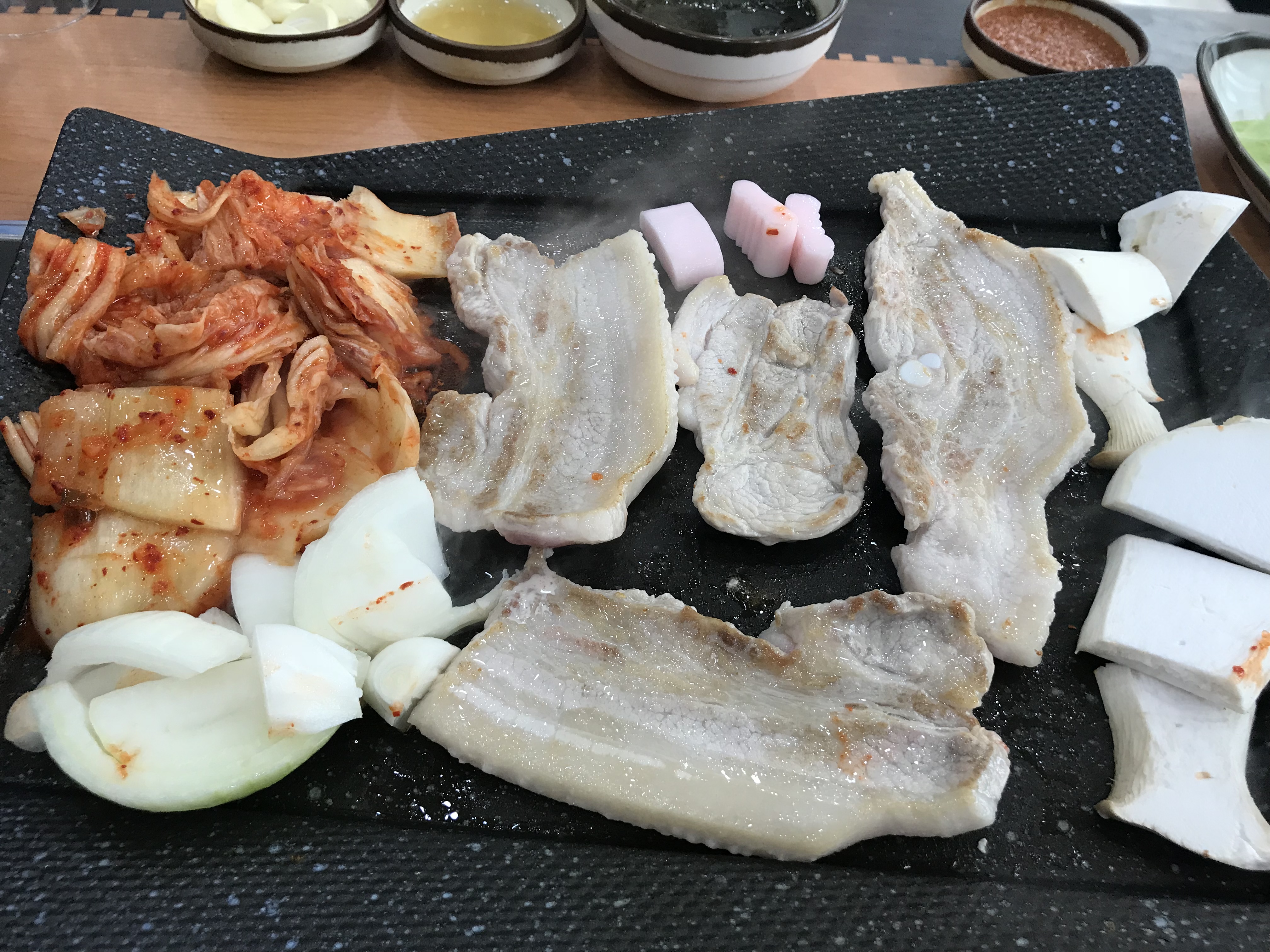 배도 고파서 비를 뚫고 삼겹살 먹으러 갔네요