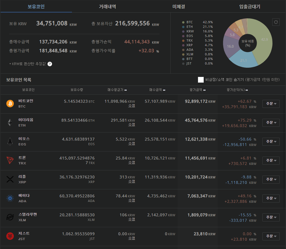 잠시 현금이 필요해서 비트코인 2개정도 정리했었는데, 딱 그날부터 떡상중이다... 주식도 그렇고 내가 팔면 오르는걸까... 여튼 이제부터 시작이라 생각하는데 탐욕인걸까!!!
