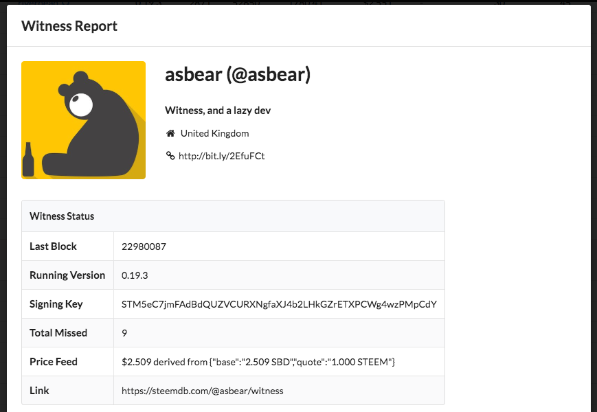 Steem은 현 시점 가장 성공적인 DPOS이며, 아시는바와 같이 스테이크 홀더들의 투표를 가장 많이 받은 상위 20명의 증인의 절대적인 영향력으로 움직입니다. 그러나 증인들의 활동을 한눈에 확인하고, 좀더 깊이 들어가 볼 수 있도록 도와주는 툴은 현재 제가 알기로 거의 없습니다. 저도 대기증인이 되기 전까지는 크게 관심이 없었고, 왜 꼭 있어야 하는지 생각해 본적도 없습니다. 그저 https://steemdb.com/witnesses 를 보면서 재밌어하는 정도였지요. 대기증인이 된 이후 점점 많은 관심을 갖게 되었고 https://steemian.info/witnesses 툴이 상당히 유용하다는것을 알게 되었고 많이 사용하게 되었습니다. 그래도 여전히 steemdb.com가 witness 정보를 정말 세세히 알 수 있는 최고의 툴이라고 생각합니다. 각 계정의 witness 탭을 이용하면 수많은 정보들을 확인 해 보실 수 있습니다.
