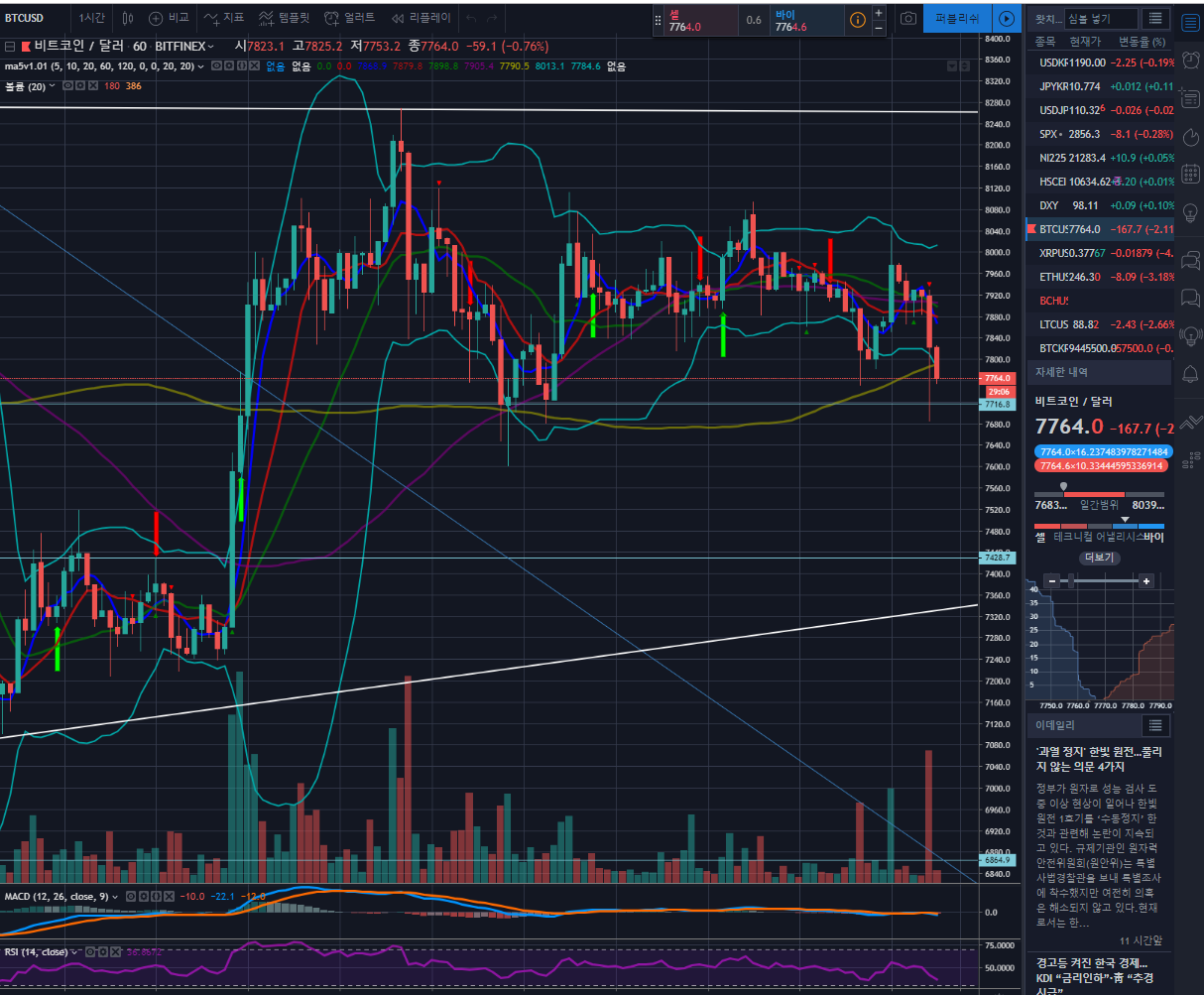 [돌핀이] 2019년 5월 23일 비트코인 간략한 분석asd5710 (70)in #kr • 7 years ago (edited)안녕하십니까 돌핀이 @asd5710 입니다 지금 비트는 7764달러에 위치해 있습니다 아직까지 비트는 횡보하는 모습을 보이고 있습니다 저항선 8500달러를 뚫고 다시 올라갈지 아니면 지지선인 7430달러에서 반등하고 올라가지 지켜봐야할것 같습니다 거래량도 트게 움직이지 않은 모습이라 아직 좀 더 횡보할 가능성이 높아 보입니다 지금은 거래보다는 움직임을 보고 거래하시는걸 추천드립니다 Sponsored ( Powered by dclick ) #lifeisgoood #cht #busy #sct